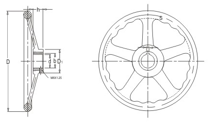 JS.101011 五輻手輪 顏色:黑色 材質(zhì):增強尼龍 用途:適用于大型、重型機械的裝備,多用于汽輪機、船舶等行業(yè) 特性:經(jīng)濟環(huán)保、抗摔、輕巧靈便、質(zhì)感強檔次高。鋼制鐵芯表面處理防銹能力強。標準化使用,安裝簡便