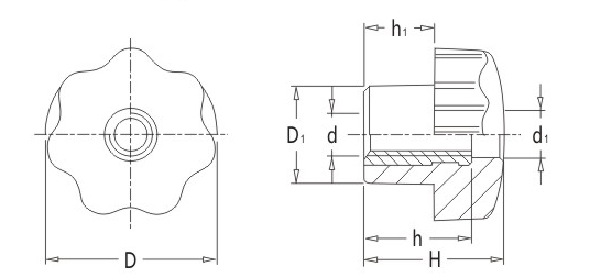 JS.102011 塑料星形把手 顏色:啞光黑 材質(zhì):增強尼龍 用途:適用于各類機械裝備、五金工具、舞臺燈光設(shè)備等行業(yè) 特性:啞光飾面、外形美觀、機械強度高、堅固耐用、標準化使用、安裝簡便