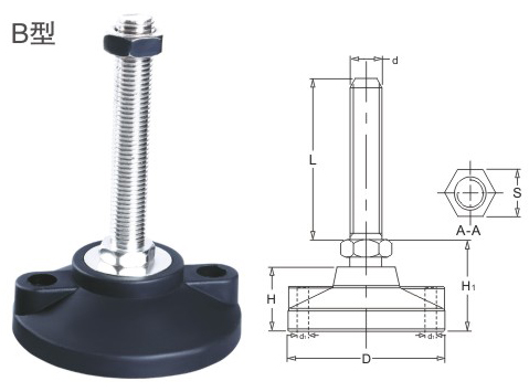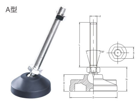 JS.108007 關節(jié)蹄腳 顏色:黑色 材質(zhì):增強尼龍、碳鋼 用途:適用于小型設備的水平調(diào)整及減震